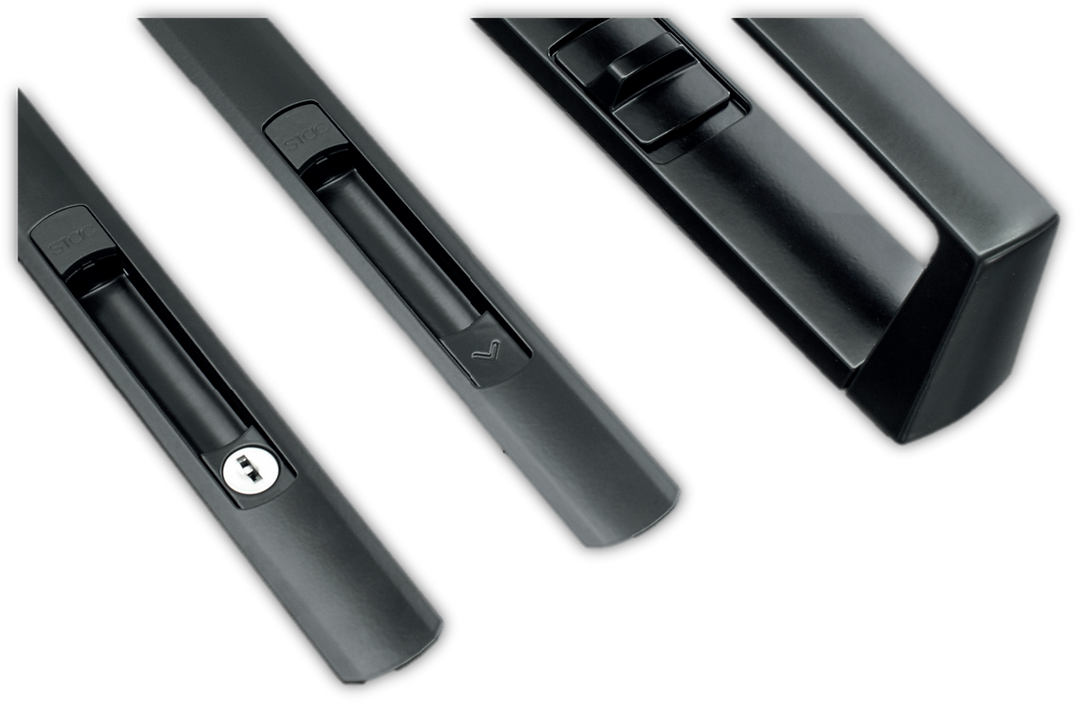 Fixação rápida ao perfil pressionando na parte inferior da trava sem necessidade de parafusos auto-roscantes.